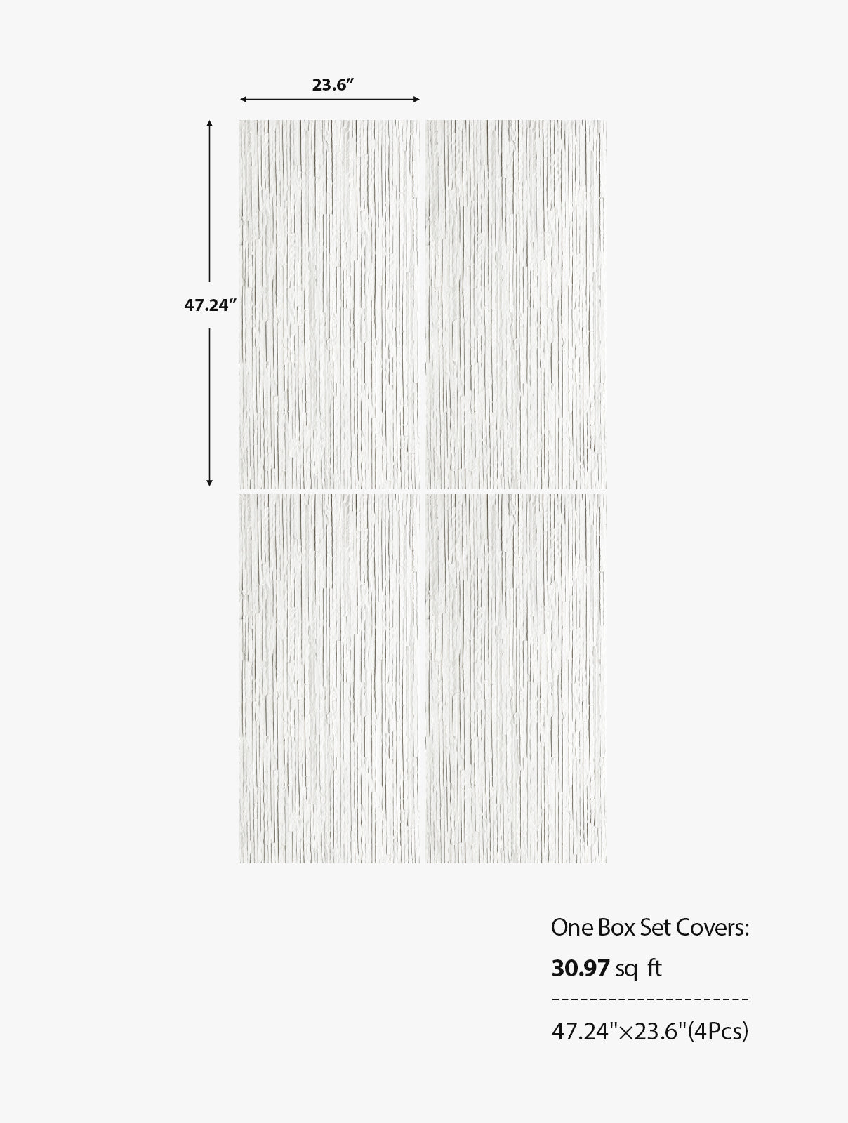 | Medium size | Size: 47.24" × 23.6" per panel Pack: 4 panels per box Coverage: 31.0 sq ft per box |